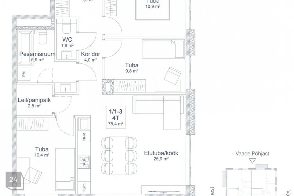 * 2-4 room apartments sized 49.4-93.1 m²;