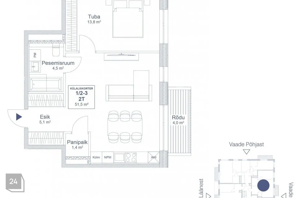 In the Saue center, two apartment buildings with business premises and 31 homes will be completed by the end of 2025 on the site of a former industrial landscape. High-quality building materials, apartment-specific heat recovery ventilation system, and A-energy class ensure a comfortable indoor climate and reasonable energy costs, and allow for the best loan conditions from banks when buying a home.