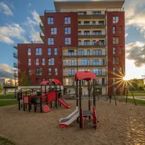 Architecture bureau Puusepp & Mänd OÜ has planned 3 modern-looking apartment buildings on the property, to be built in two stages – first, a 9-story building with 38 apartments will be completed, and in the next stage, two 7-story apartment buildings. The buildings are connected by an underground parking floor. Each building has a spacious elevator, storage rooms, and bicycle storage areas. There is a selection of 2- to 5-room apartments ranging from 48-137 m², from which you will definitely find the most suitable one. Thanks to large windows and an open layout, the apartments are spacious and bright. Each apartment has a balcony or terrace. Inspired by nature-close tones, we have created interior finishing solutions in cooperation with an interior architect. A courtyard area will be built on the property, where it is possible to relax and unwind in every season. A safe playground is planned for the youngest family members. The terrain forming between the buildings can be used as a sledding hill in winter.