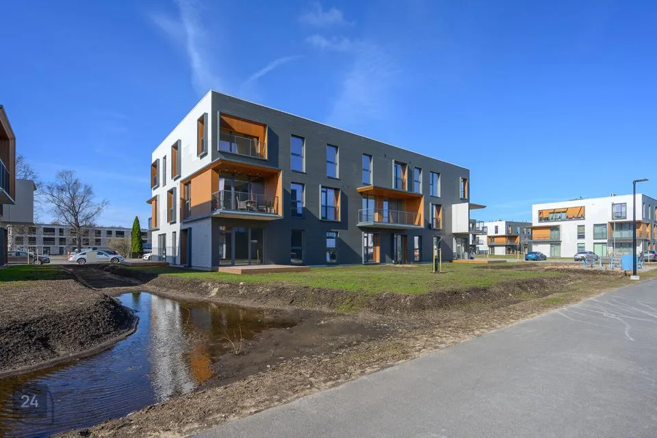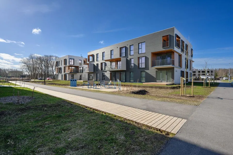 HEATING The heat source for the apartment buildings is gas. Each apartment building has its own gas boiler. All apartments have underfloor heating and apartment-specific heat recovery ventilation (depending on the apartment, either ceiling-mounted or wall-mounted ventilation unit). ELECTRICITY CAT6 data cable installation has been carried out with the expectation that the apartment buyer will connect with a service provider. A central intercom system has been installed in the apartments for opening the stairwell entrance door. Power outlets have been brought to lighting locations for installing lights. INTERIOR FINISHING Apartment prices include interior finishing. Walls and ceilings of living spaces are painted, bathroom walls are covered with ceramic tiles and/or painted according to the architectural project. For flooring in living spaces and hallways, veneer parquet has been used; floors in toilets, bathrooms, and saunas are covered with ceramic tiles. BUILDING AND CONSTRUCTION - Architect KUU Exterior walls are insulated and covered with boarding and facade panels – according to the architectural solution. The house is built on a slab foundation. The load-bearing walls are made of fully concreted hollow blocks. All interior walls between apartments are made of 240mm thick, fully concreted hollow blocks to ensure greater sound insulation. Interior walls are smooth-plastered and painted. Intermediate floors are made of precast hollow panels with impact noise insulation and concrete leveling screed. Three-story apartment buildings have an elevator, except for buildings with 7 apartments. Storage rooms are located on the first floor. First-floor apartments have terraces. Balcony apartments have a steel mesh railing that matches the architecture. DEVELOPER