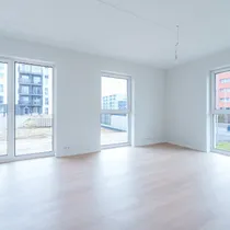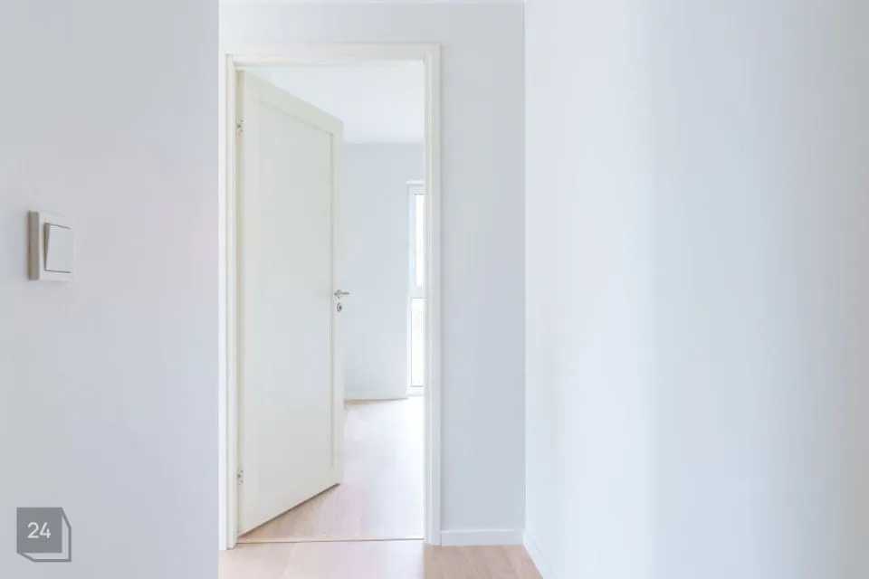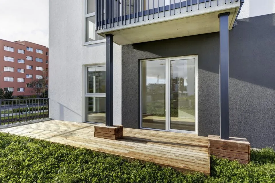 Each home has a balcony, if you live on the first floor, you can comfortably step onto the terrace from the living room. As a standard solution, the interior finish is bright and airy - walls in light colors and floors in natural and warm wood tones.