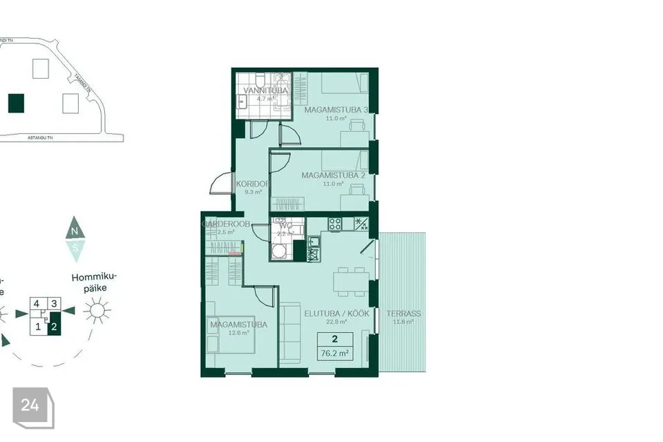 With the purchase of a home at Järveotsa Kodu, you get a free storage space and high-quality kitchen furniture with appliances. . The cozy apartments are characterized by functionality, plenty of light thanks to high windows and modern underfloor heating. New homes are assigned an energy-efficient B energy class.