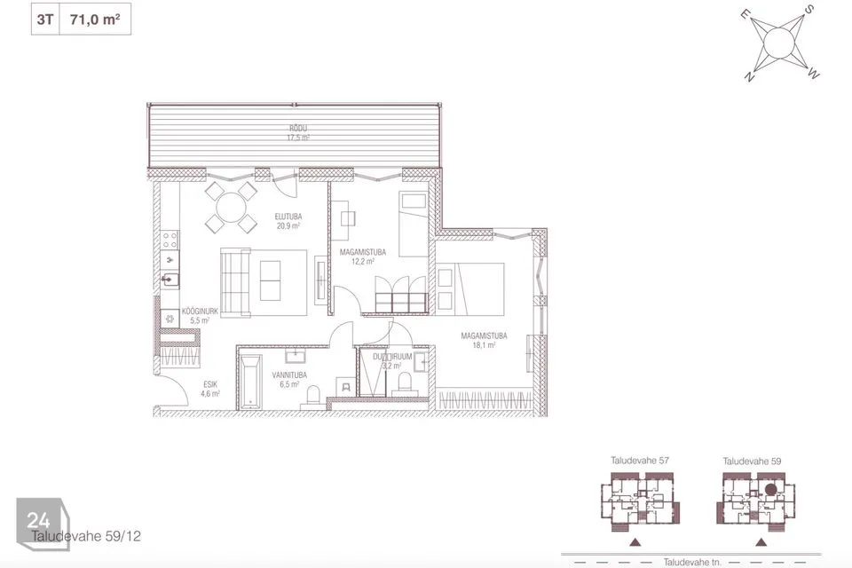 Tiskre Prisma, within walking distance, can become your home store, and numerous local eateries provide a break from daily cooking. Tabasalu is located uphill, offering diverse shopping, sports, and leisure opportunities. The Tiskre primary school is set to be completed next year.