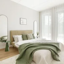 Solar panels on the roof, economical air-to-water heat pumps, heat recovery ventilation, and triple-glazed windows ensure A-energy class, making your new home's maintenance costs reasonable. Floor heating is individually adjustable per apartment. Effective sound insulation ensures that neither neighbors nor passing cars disturb your home's peace. Banks typically offer loan benefits for A-energy class homes.