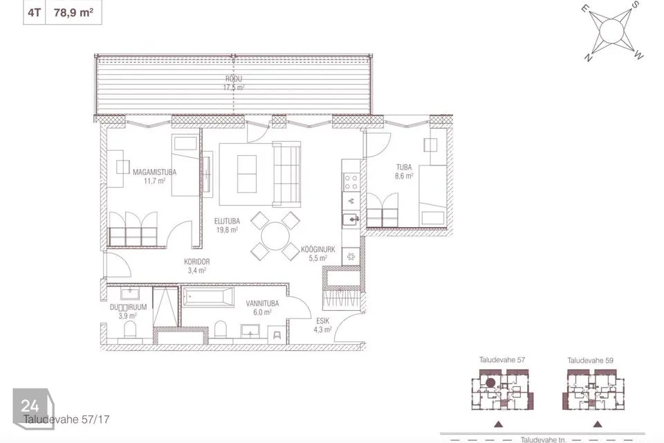 Tiskre Prisma, within walking distance, can become your home grocery store, and numerous local restaurants offer a break from daily cooking. Uphill is Tabasalu with diverse shopping, sports, and leisure opportunities.