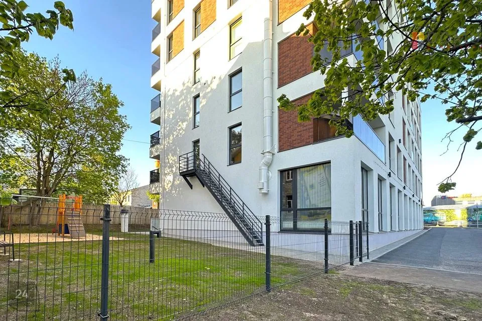 In the six-storey, B-energy class building, you'll find a restaurant on the ground floor and a dental clinic on the second. Underground level features storage units and parking spaces. The courtyard is gated and includes a children's playground. Solar panels on the roof supply electricity for the building's use.