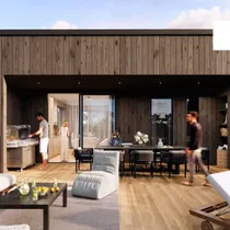 Essence homes were designed by Lumia Architects, considering three principles in creating the living environment: closeness to nature, privacy, and harmony. In the outdoor space vision, it's crucial that existing greenery is preserved as much as possible and the connection to the forest remains free. The apartment buildings' architecture is inspired by the forest – using calm tones on a wood facade that fits the environment, ensuring the quarter's timeless character and compatibility with the forest and bog edge landscape.