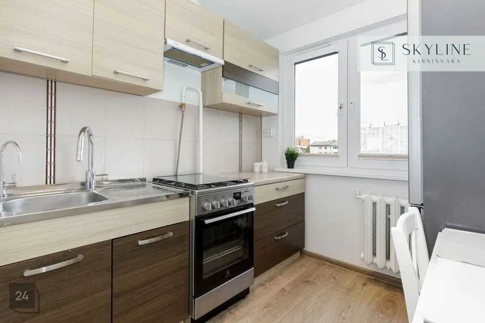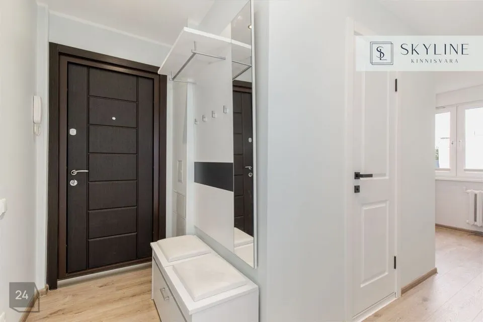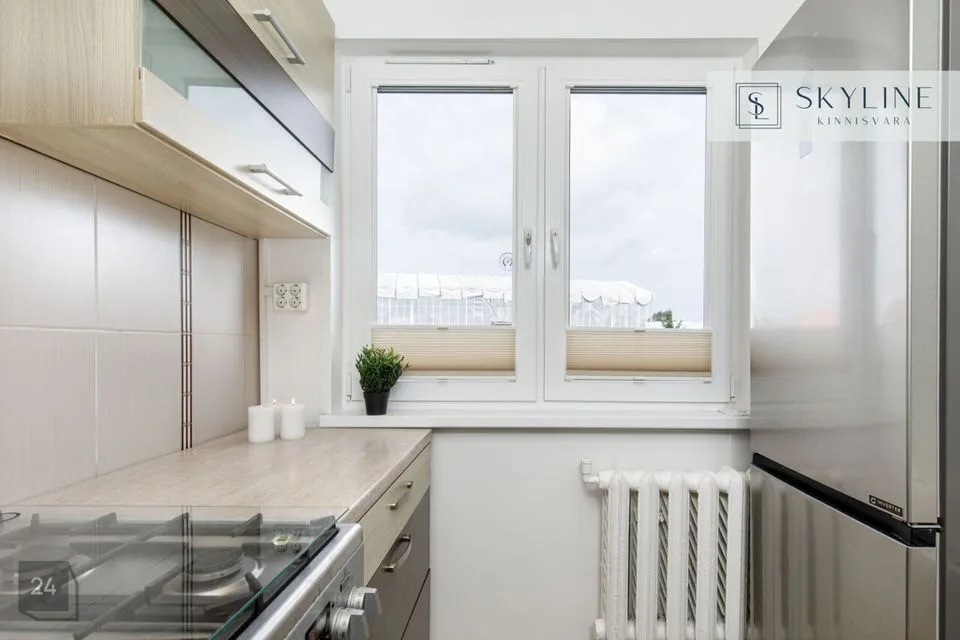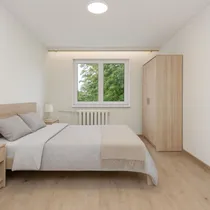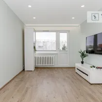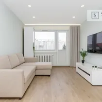APARTMENT The apartment has undergone a high-quality renovation and is being sold partially furnished (some photos include inspiration with a sofa, bed, bedside tables, wardrobe, and curtains). Floors have been replaced with laminate parquet, and walls are painted in light tones. Bathroom drain pipes have been replaced, and a new sink installed. Windows were also replaced in 2020 with triple-glazed package windows. The apartment's exterior and interior doors are also new. The layout is functional - from the hallway, you can access the bathroom and kitchen, and from the living room, you can access the balcony and bedroom. A layout modification was made to combine the bathroom, which required the apartment association's permission and will soon receive a usage notification.