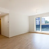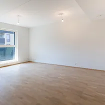 Mechanical ventilation with heat recovery and water-based underfloor heating ensure a comfortable indoor climate and energy efficiency – the apartment has a B energy class rating. Room temperatures can be easily adjusted using wall-mounted thermostats.