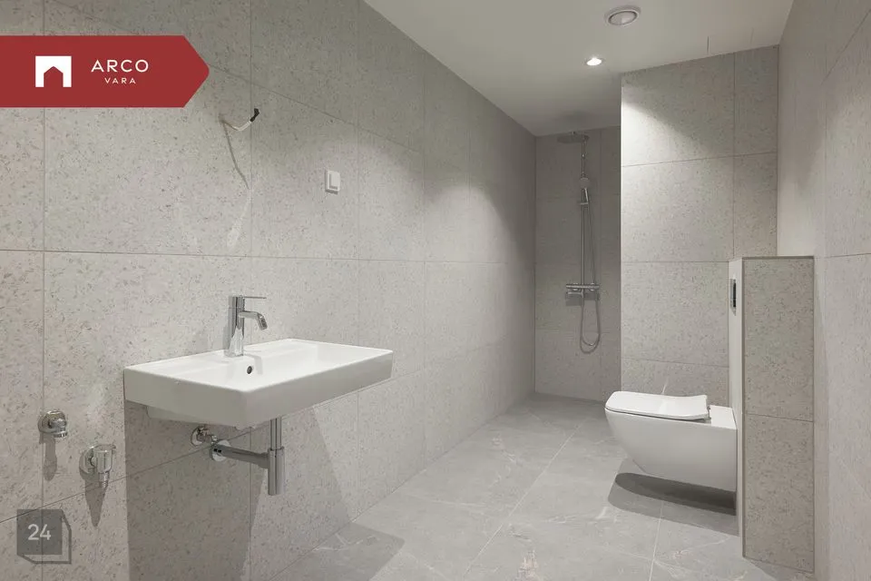 Interior Finishing • Natural tones and high-quality materials that last generations • Natural oak parquet throughout the apartment • Stylish terrazzo-patterned tiles in the bathroom • Villeroy & Boch sanitary equipment