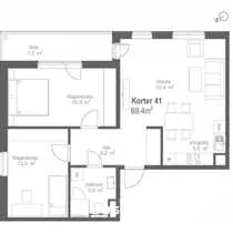 • The facade is characterized by painted concrete, with rolled roofing material chosen. Windows are triple-glazed.