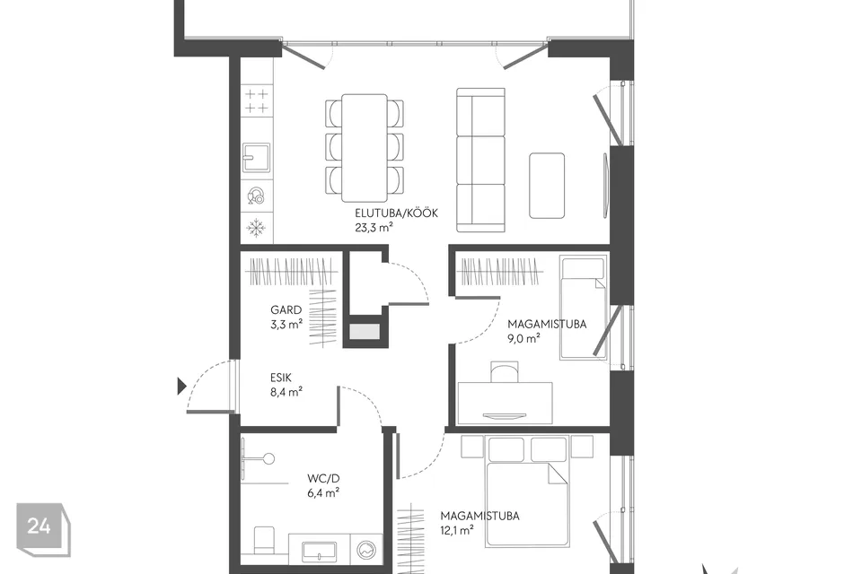 Here you can easily forget that Tallinn city center is just 10 minutes away. The Kodulahe surroundings inspire movement: walking on the beach, swimming or surfing in the sea, running in the forest, cycling or rollerblading on the beach promenade. This is not just houses on the edge of the forest, but a comprehensive living environment that also includes a cozy bakery and a pizza restaurant.