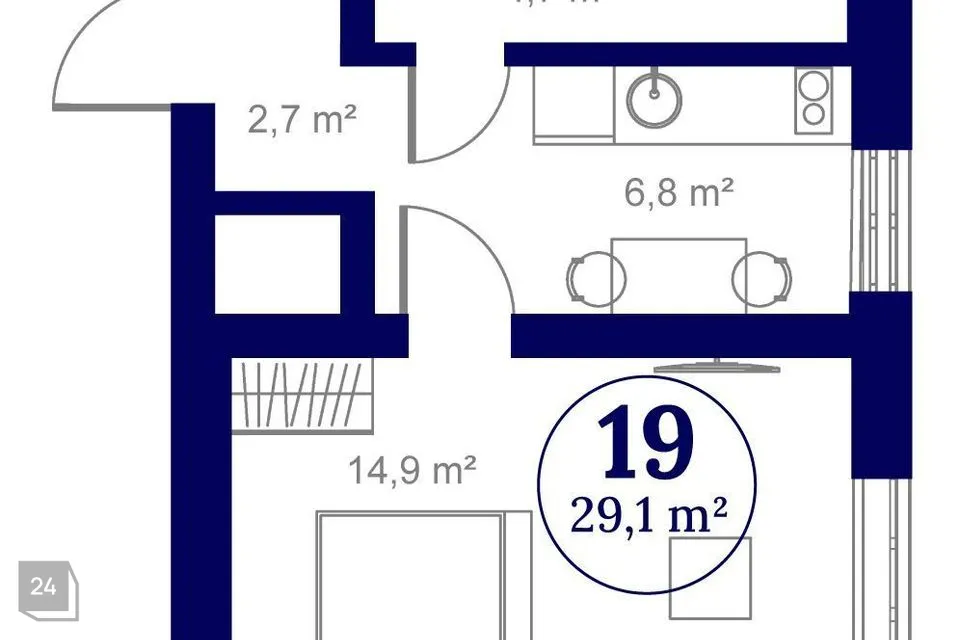 The apartment is located on the 2nd floor, with windows overlooking the inner courtyard in front of the house. The apartment consists of an entrance hall, kitchen, room, and shower-toilet - with a total area of 29.1 m2.