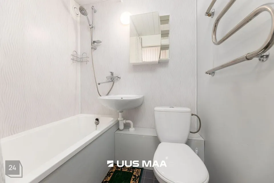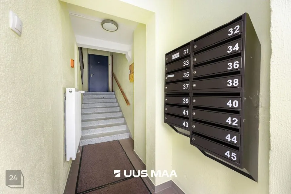 This 32.9 m² apartment is located on the 1st floor of a 5-storey building. The layout is convenient and functional, featuring an entrance hall, separate kitchen, spacious living room, bathroom with WC, and a practical storage nook.