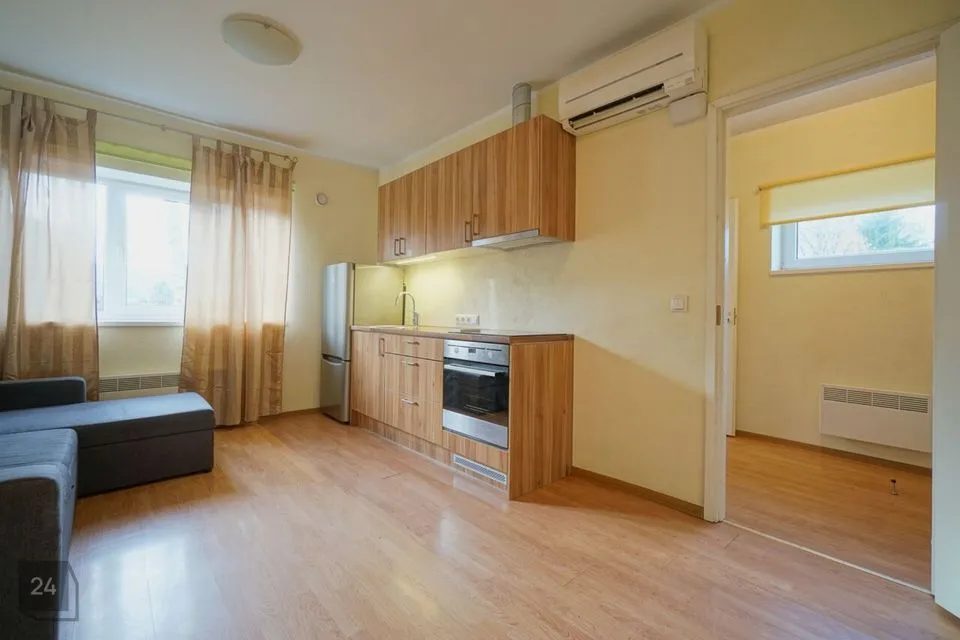 Apartment Advantages and Main Features • Furnished and ready for immediate move-in. • Low utility costs (air heat pump + electric heating). • Excellent location – all essential living amenities (school, train, shop, swimming pool) just 100-450 meters away.