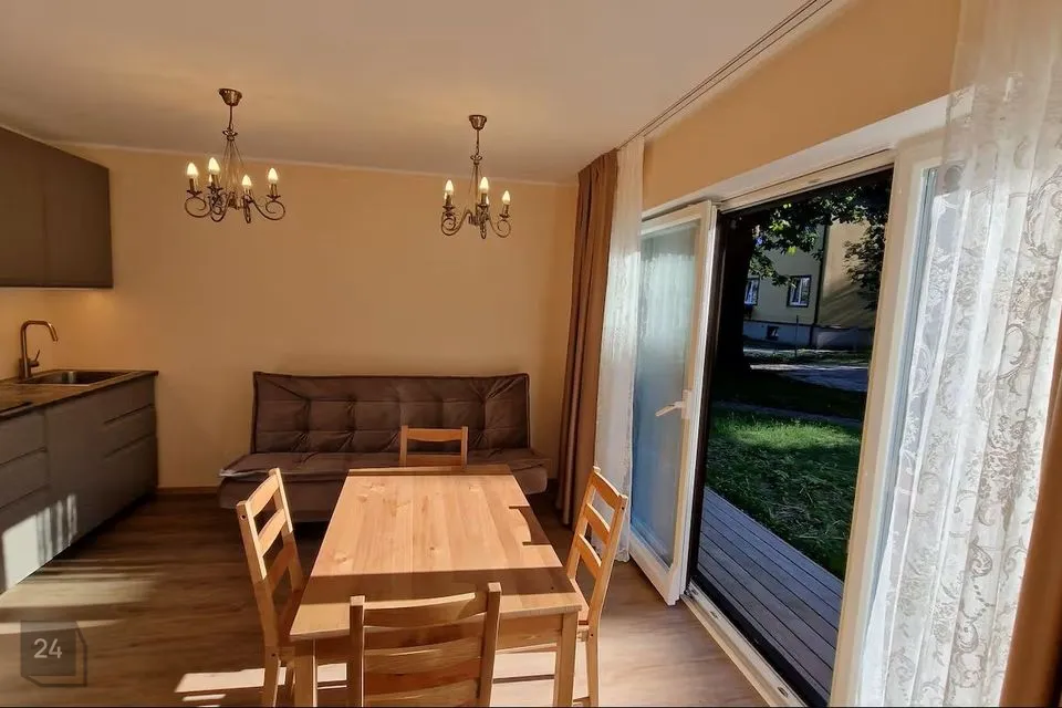 Beautiful new apartment for rent in backyard building at center area. Apartment has own terrace and gated parking area. Nearby are located shopping street (Baltika), cafeterias, small shop and bus stop, but its also on walking distance from city centre. The apartment building and apartment itself are renovated. Apartment is fully furnitured and ready to move in. The rent price will be added deposit in amount of one month rent and brokerage fee+VAT. Rent period 1st Sept 2025-1st June 2026
