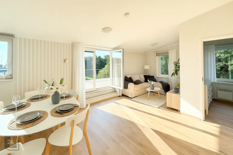 Spacious and modern design – well-thought-out layout with an open-plan kitchen and living room, two bedrooms, and a bathroom/WC