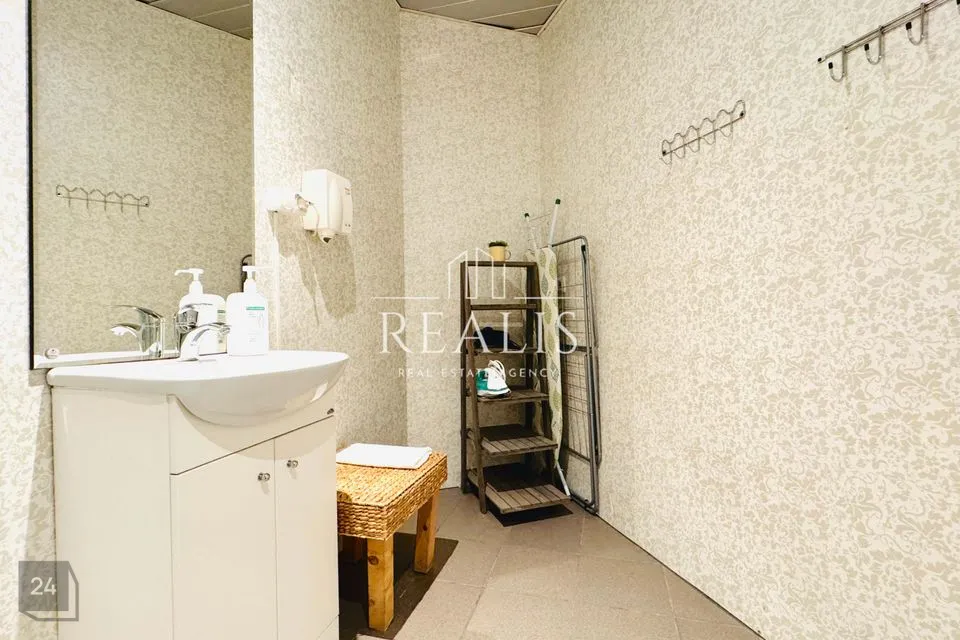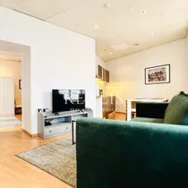 The apartment is furnished, all the furniture shown in the pictures remains. Bed linen, towels, dinnerware and cutlery are also provided. The washing machine has a tumble dryer.
