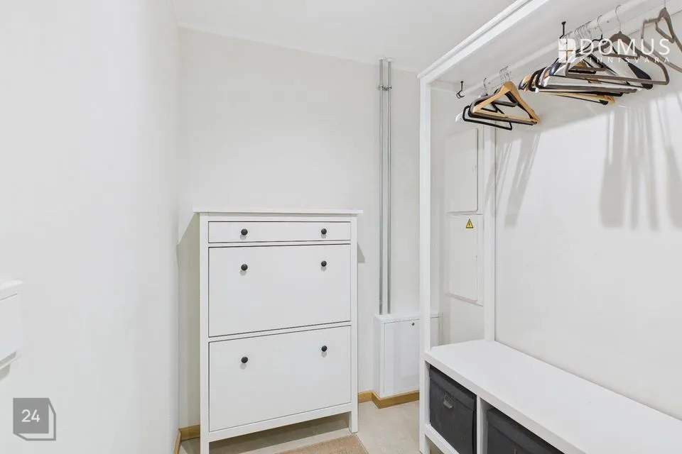 Additional value is provided by the walk-in wardrobe area in the hallway, a separate toilet and bathroom, a balcony, an underground parking space, a storage room on the first floor, and of course the very well-designed kitchen solution — the kitchen is slightly separated from the living room, so you don’t have to cook right next to the sofa. Please refer to the floor plan attached to the photos for the room layout.