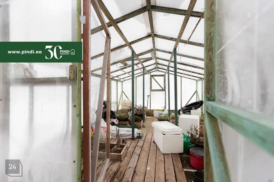 The size of the property is 742 m², with a well-maintained garden with fruit and berry bushes. The yard of the property is behind the house, which provides pleasant privacy. There is a large 24 m² greenhouse in the yard where you can grow your own cucumbers and tomatoes.