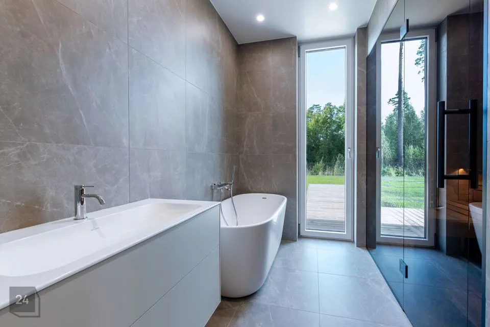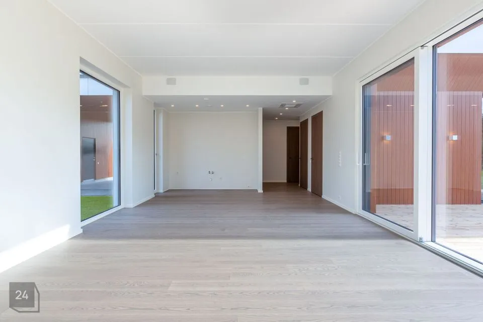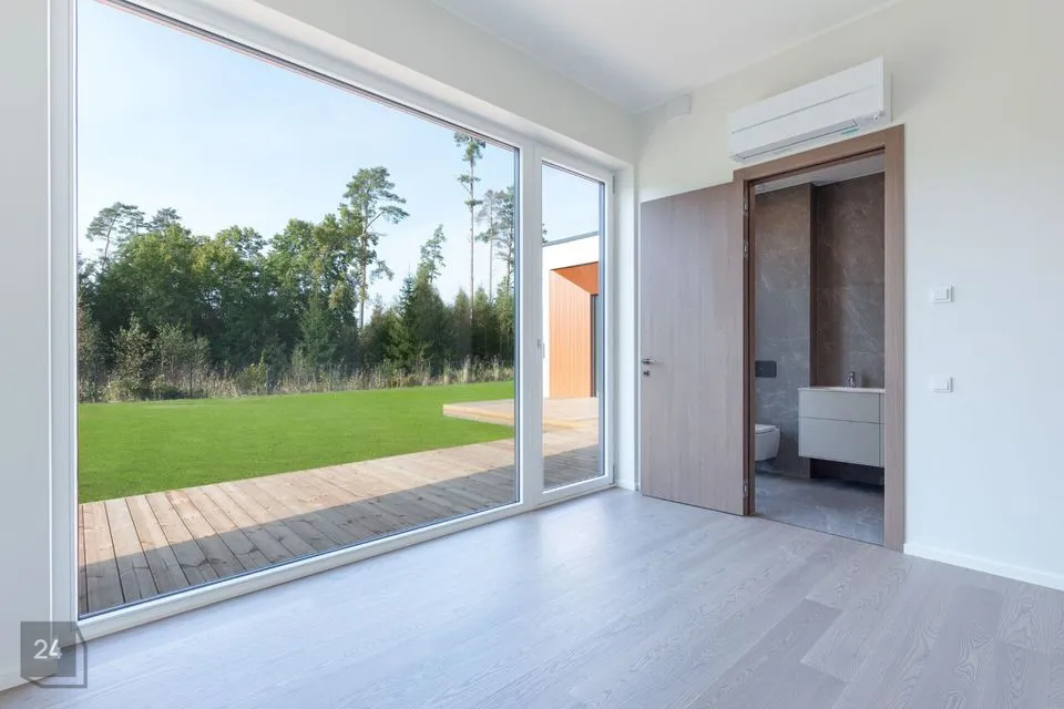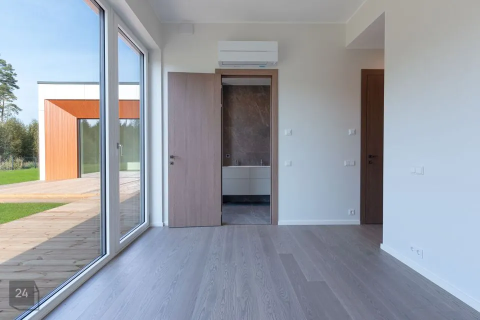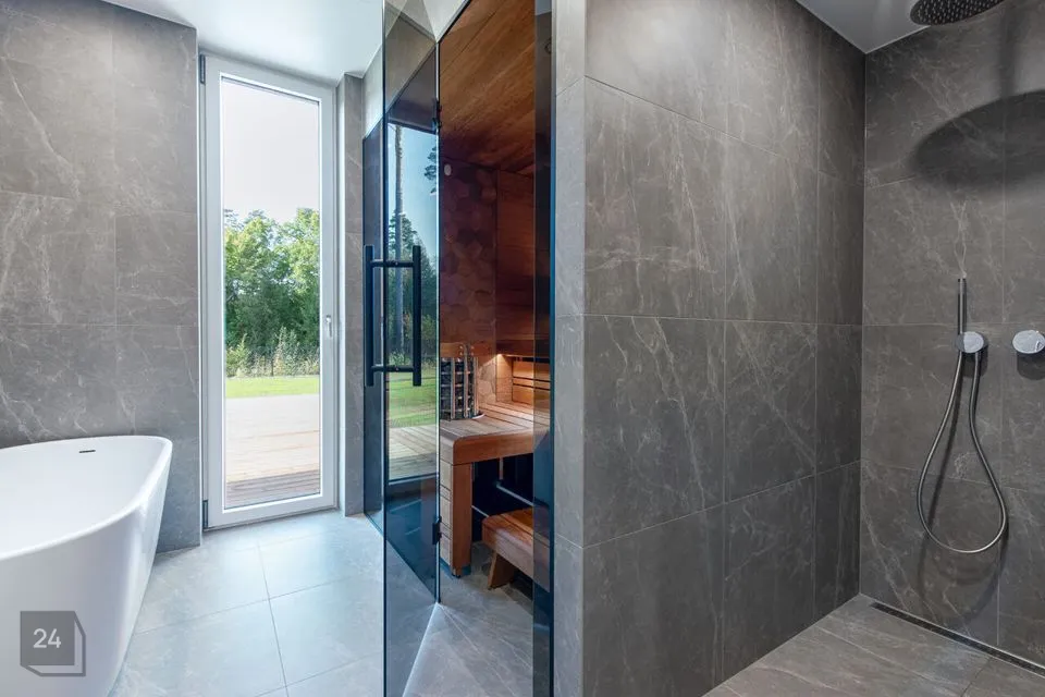 THE HOUSE INCLUDES * terrace overlooking the inner courtyard from the living room, sauna, and bedroom * kitchen-living room * four bedrooms * sauna with thermally modified wood and HARVIA heater * bathroom - separate shower and bathtub, wc and sauna, * separate wc * VILLEROY & BOCH sanitary ceramics and BALTECO Azur stone bathtub * VENUS DESIGN tall interior doors * energy-efficient ventilation with heat recovery * eco-friendly and independent ground source heating * two cooling devices * A energy class (with solar panels) and much more...