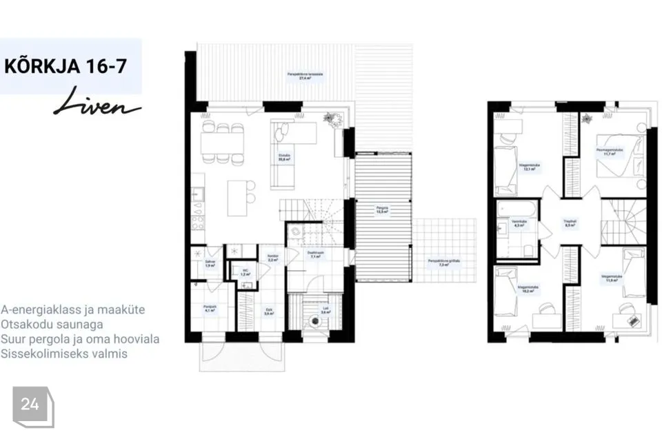 Iseära is a new emerging garden city near Harku Lake. Gable-roofed row houses and apartments are rising here, each with its own unique character, both inside and out. The homes have high, 3-meter ceilings and 2.6-meter windows. All Iseära row and apartment houses are A-energy class.