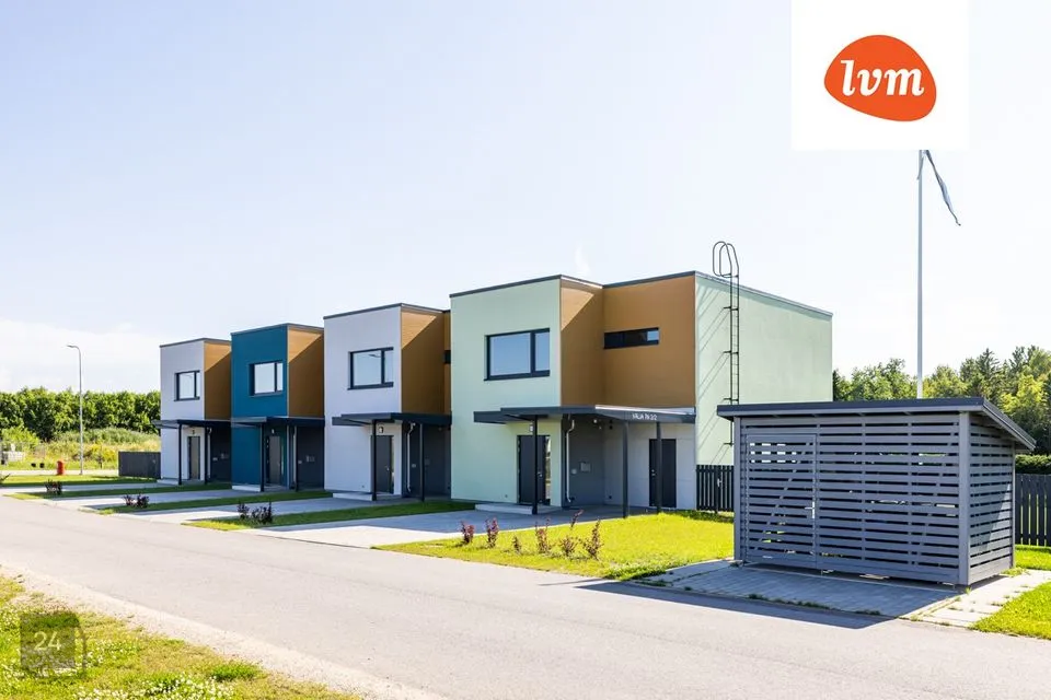 Iga ridaelamuboksi ees on parkimisala kahele autole.