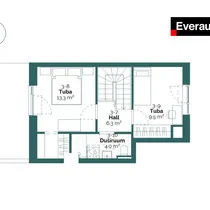 Homes in A-energy-rated buildings (calculated energy efficiency) have a two-story layout, private outdoor areas, and terraces. Each house contains four apartments. The ground-source heating system, apartment-specific heat recovery ventilation, and rooftop solar panels help protect the environment, reduce heating costs, and ensure a higher quality of living. Each apartment is equipped with an individual energy consumption meter.