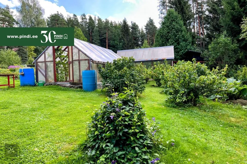 The summer cottage complex consists of a residential building (3 rooms and kitchen), an auxiliary building (garage + summer kitchen and sauna), greenhouse, woodshed, and outdoor toilet.