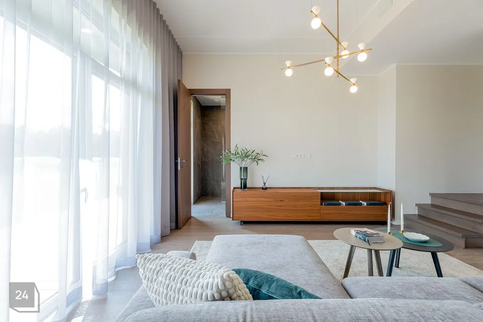Rooms are full of calm and ageless elegance, which in its unpretentiousness is extremely luxurious. Minimalistic furniture is harmonious and stylish, the selected items complement the high-quality and beautiful interior.