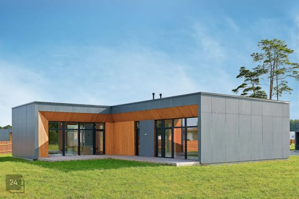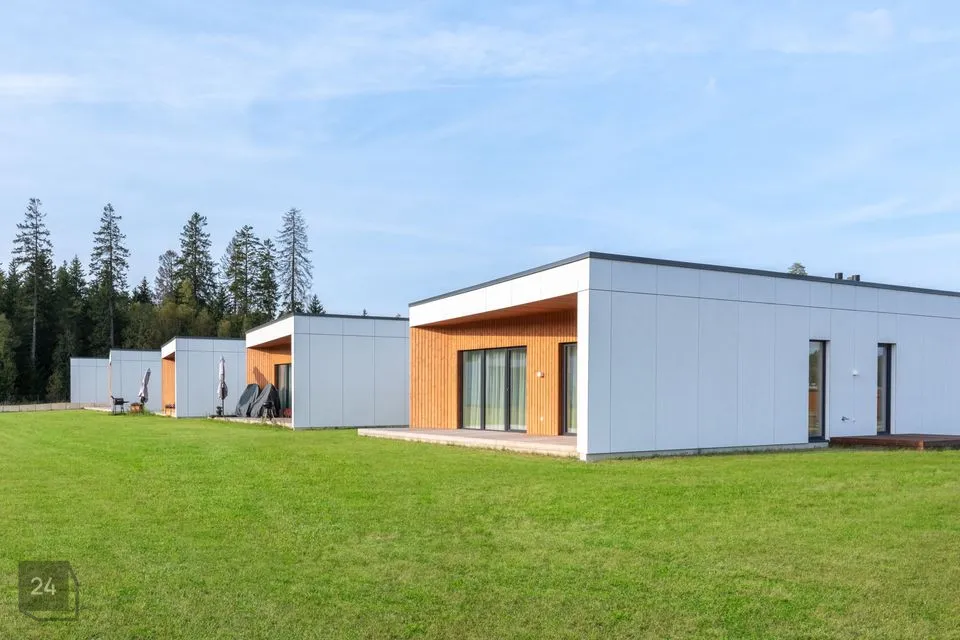 The houses of natural colours are surrounded with fancily designed landscape, a wild forest is visible on the horizon, and you can go there right from the village – just walk over a small bridge.