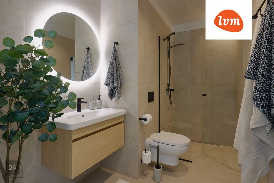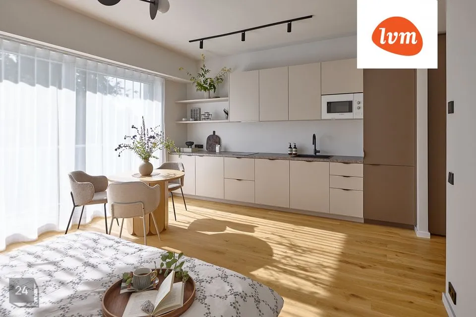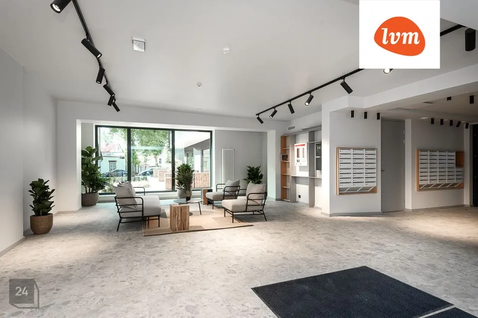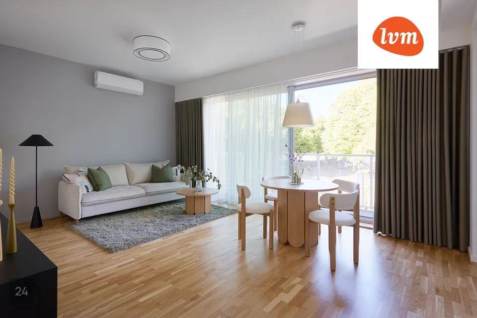 Adjustable district heating with water floor heating pipeline, central forced ventilation with heat recovery, wooden frame 3x glass package windows, wooden parquet floors, keyless smart locks.