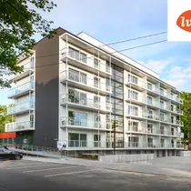 The reconstructed six-story building is connected to a two-story new part of the building. The building has a total of 55 apartments with balconies and 4 commercial premises.