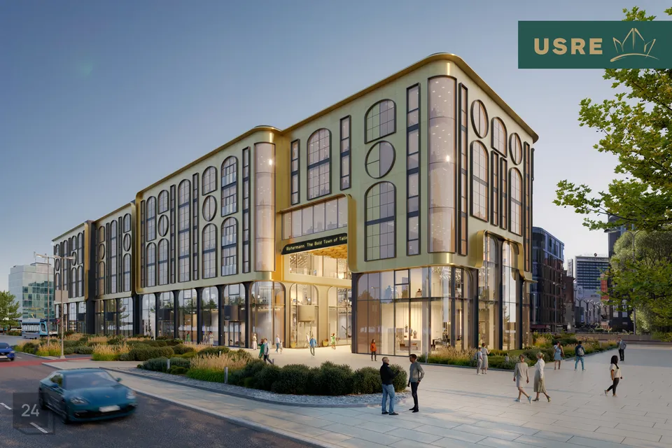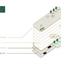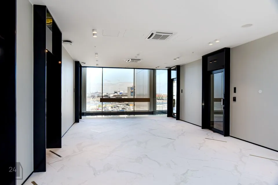 The building has approximately 13,000 m² of total area, with each office floor being around 2,200 m². The first floor will be developed with commercial and catering spaces along with spacious outdoor terraces, with the upper floors designated for offices.