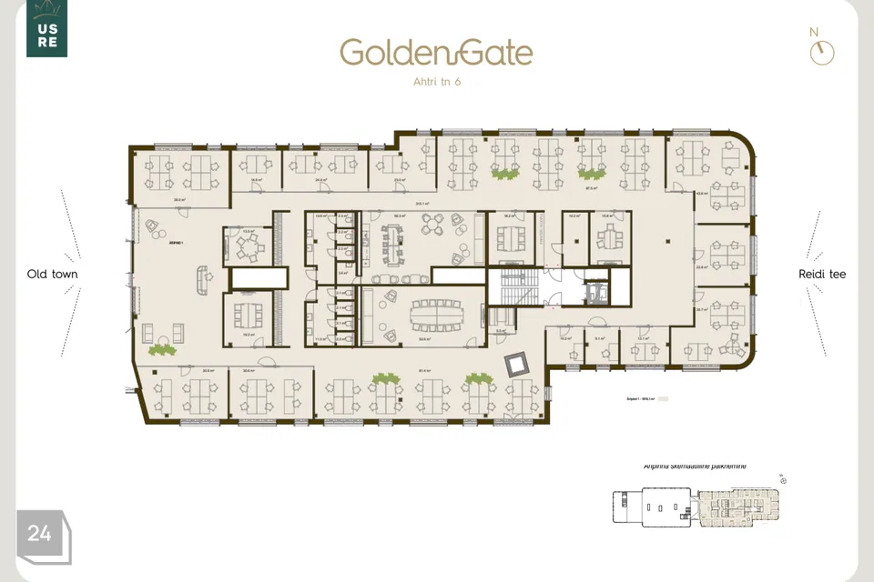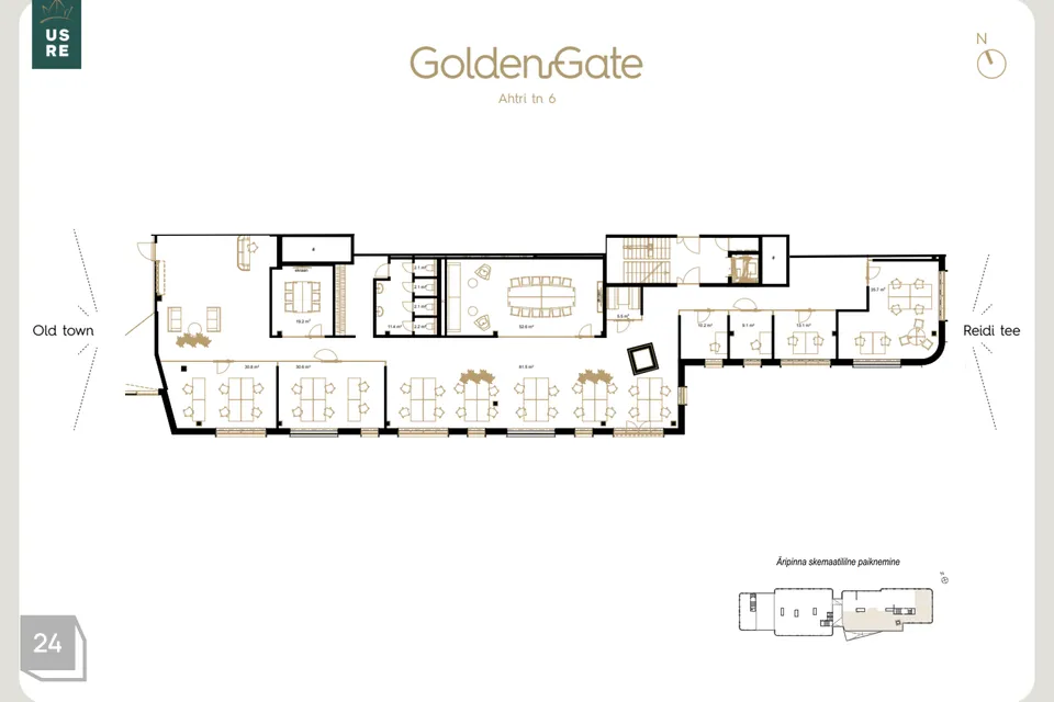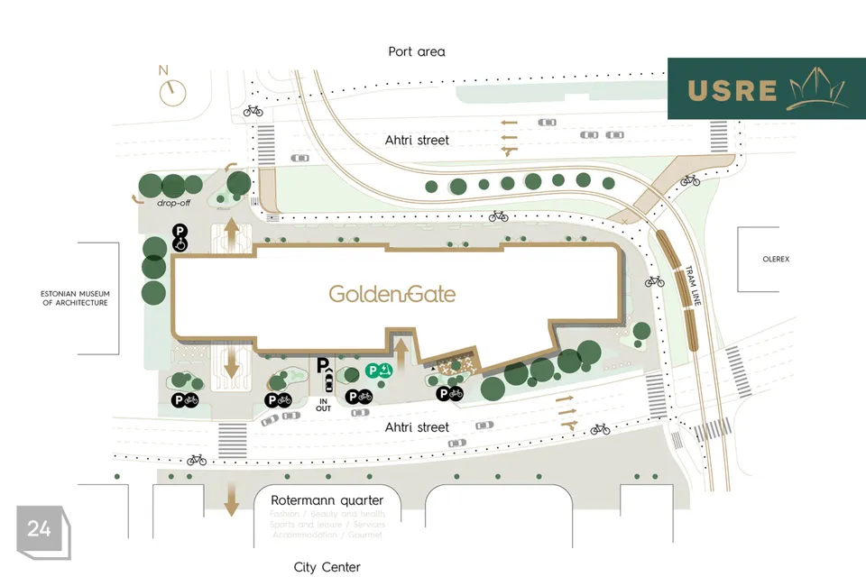 Additional value is created by an underground parking lot for 105 cars, electric vehicle charging points, and a green roof terrace that offers a unique environment for working and relaxing. Golden Gate is located in one of Tallinn's most easily accessible locations – convenient access for car, public transport, and pedestrian traffic.