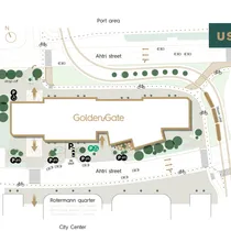 Golden Gate is located next to the Rotermann Quarter, where a historic industrial area has been transformed into a unique urban space. The quarter's heart is a city square surrounded by exclusive offices, apartments, shops, boutiques, cafes, and restaurants.