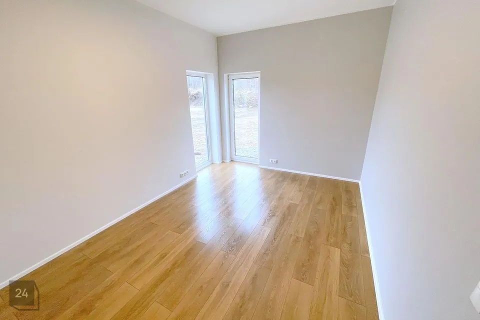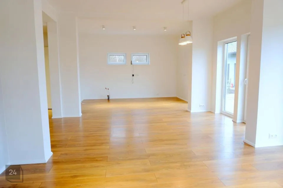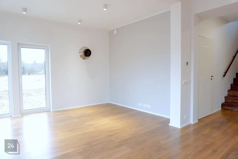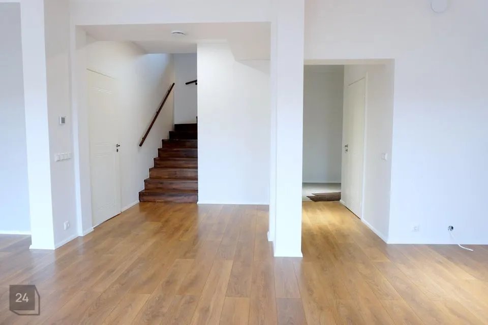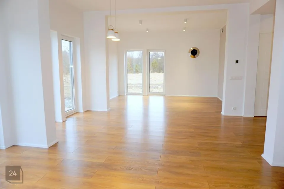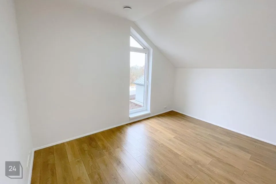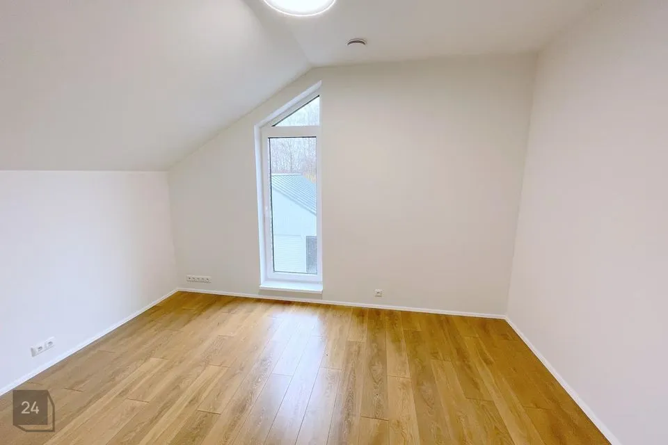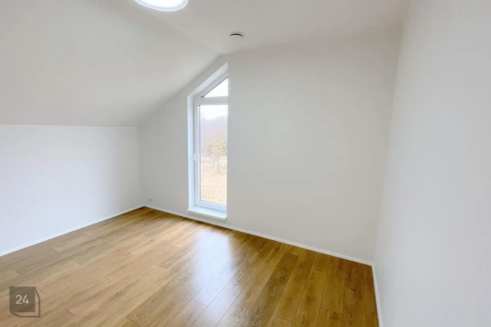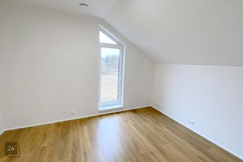 The detached house consists of a wooden building with a double basement and a pitched roof, with concrete floors on the ground and first floor. The configuration of the building is appropriate and logical to the designed structures. The ground floor of the dwelling comprises entrance hall, staircase, toilet, technical room, open kitchen/dining room, living room, bedroom/office. From the living room there is access to the terrace to the west. Access to the second floor via a wooden staircase. On the second floor there are 4 bedrooms and a bathroom.