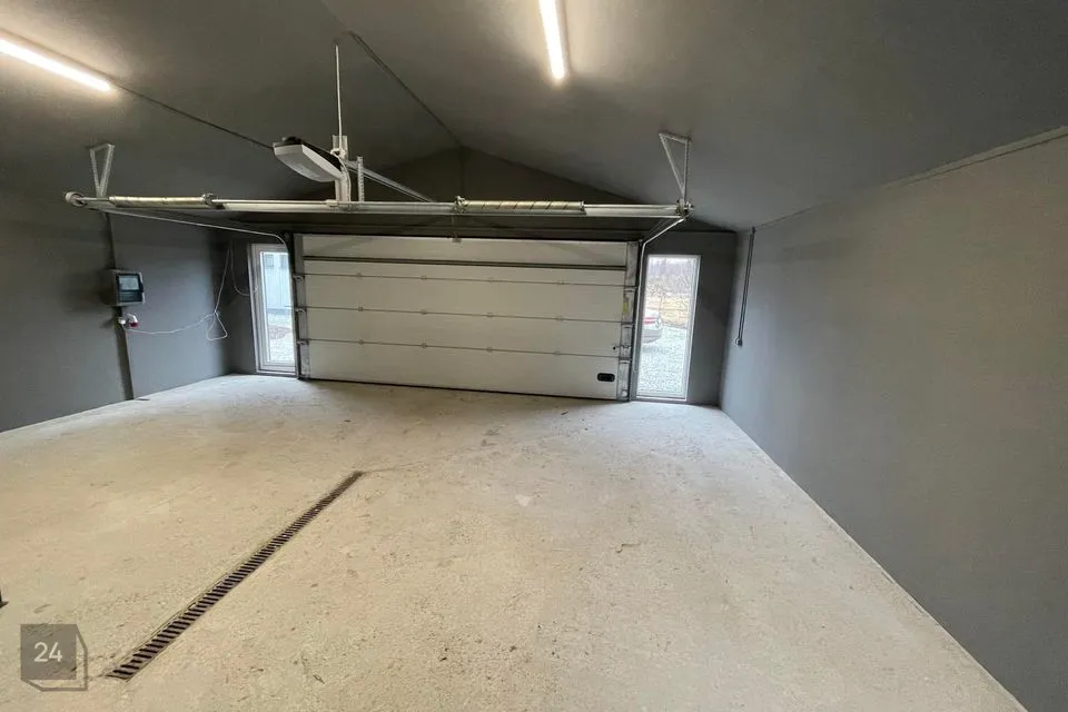 The garage is a single storey building with a square configuration and a pitched roof. The garage is insulated and allows heating. The garage doors are motorised.
