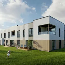 The new homes have been issued an A energy class. A comfortable room temperature is ensured by water underfloor heating based on ground-source heat, which can be conveniently regulated room by room. A good indoor climate is created by apartment-specific heat recovery ventilation. Additionally, solar panels on the roof produce part of the required electrical energy.