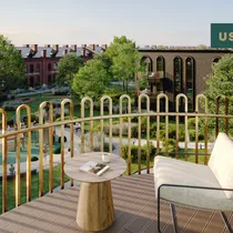 - Spacious balconies and family apartments with private gardens.