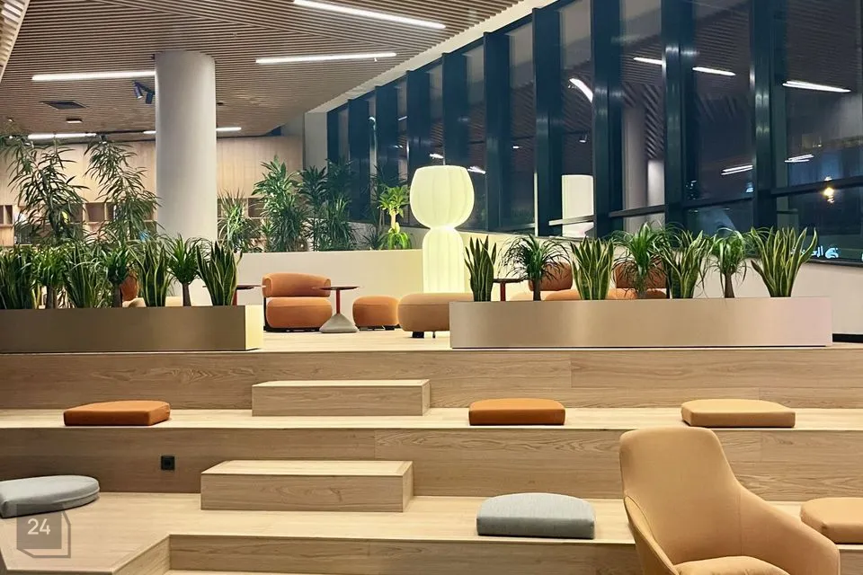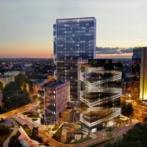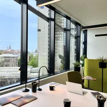 In addition to office spaces, there is co-working space SPACES, where is possible to rent workspaces and meeting rooms. Tenants can enjoy a sports club with an outdoor terrace, also relaxation area with a pools and saunas. The 15-story building has a rooftop terrace with stunning views, accessible to all tenants.