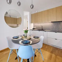The townhouses have an A-energy class. The modern geothermal heat pump system and heat-retaining structures ensure very low utility costs for the residence.