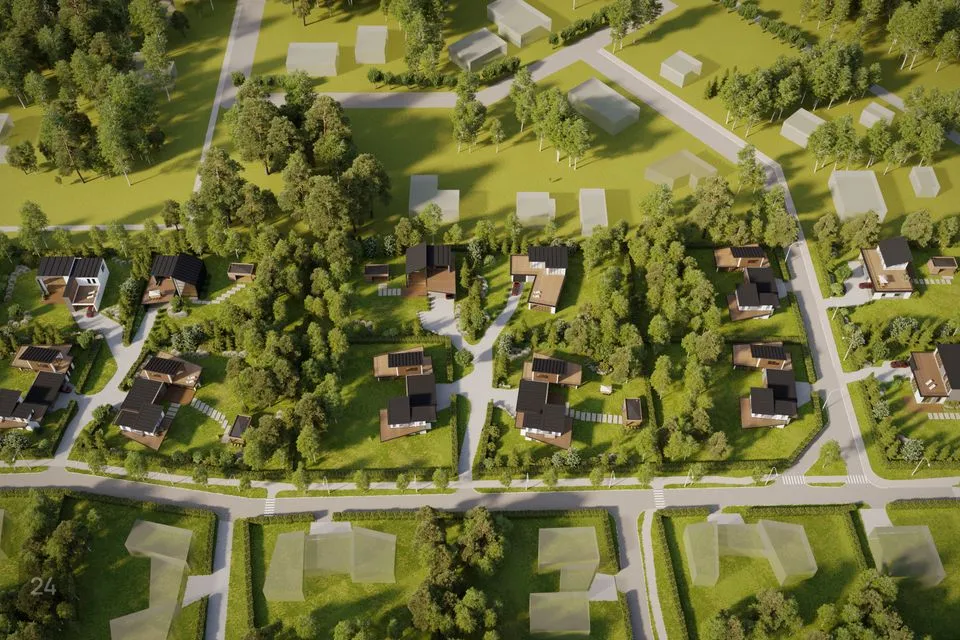 Each property is allowed up to 310 m² of building area (390 m² for semi-detached house plots), which enables creating a spacious living area even on a single level. A main building up to 2 stories and an auxiliary building up to 1 story and 50 m² are permitted. According to the architect's vision, the buildings should consider the surrounding nature, creating a harmonious and beautiful living space.
