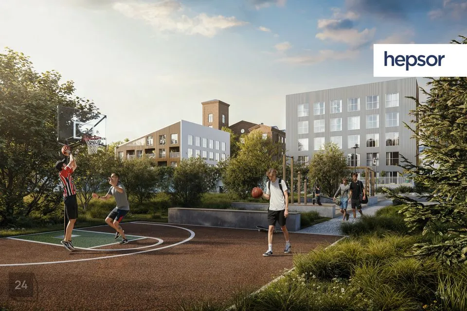 The newest members of the quarter are two cozy apartment buildings rising at the Manufactory 12 address, where beautiful views of the historic Manufactory Factory open from the home windows. In a place where once the Sitsi factory chimneys smoked and factory whistles blared, new homes with unique character are being created. The distinctive M12 buildings are surrounded by diverse greenery along with an activity-rich courtyard, where it's pleasant to spend time actively or simply relax or have a picnic.