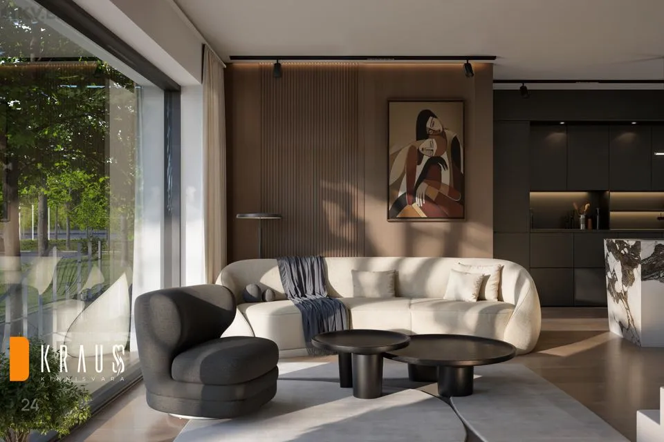 The house has an A energy efficiency class. New generation PIR insulation is used, with a heat transfer coefficient of 0.025W/mK. Solar panels will be installed on the roof. An air-water type heat pump ensures economical thermal energy in the apartments. Additionally, wooden-aluminum triple-glazed windows will be installed.