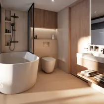 The Yacht Club townhouses offer two interior finishing packages, Opal and Silver. Both packages are inspired by proximity to the sea and natural living environment while maintaining tasteful modernity and timeless design. The Opal package features soft and calm tones, with beige, white, and gray as primary notes. In contrast, the Silver package represents more boldness and character, with gray, black, and wood as main tones, bringing tasteful contrast to the home.
