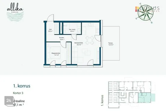 For sale - a spacious and light-filled stylish 2-room home with a terrace in the