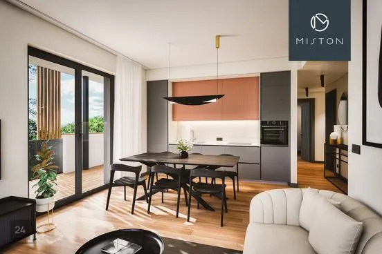 The spacious and light-filled layout includes an entrance hall, living room-kitchen, large bedroom, large bathroom-shower