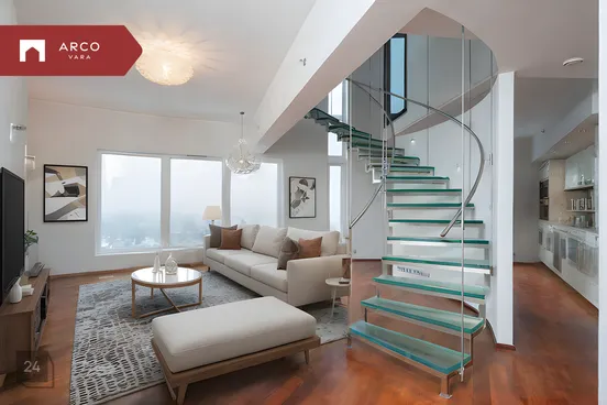 Exclusive penthouse for sale in the heart of Tartu - Tigutorni. This is the highest apartment in Tartu and has the best views. In the heart of Tartu, in the immediate vicinity of the Emajõgi River, a 255 m² penthouse apartment spread over two floors is available, with an