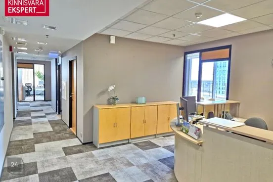Office space for rent on the 17th floor of the SEB Bank headquarters, offering excellent views. This is a large and versatile office space divided into different work areas, ensuring the efficiency of an open work environment as well as the silence and comfort of private